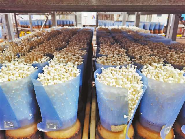 “以前传统种植用固体菌种,扩繁转接容易染菌,金针菇长一轮要70多天。”工厂总经理向超告诉记者,“现在换成液体菌种,全程自动化,生长周期缩短到52天以内。出菇房配备了传感器,温度、湿度、光照、二氧化碳含量全部实时监控,并有专人24小时呵护,品质有保障。”