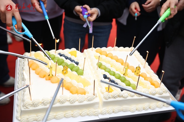 学校领导为“三月寿星”送祝福。
