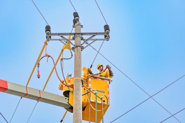 “核对线路相序与发电车相序是保障发电车顺利并网、避免设备损坏的关键步骤,我们必须确保两者完全一致。”带电作业班成员吉昌奎介绍。经过反复核对确认无误后,高空作业人员小心翼翼地将10千伏中压发电车的三根柔性电缆线,分别精准接入线路指定位置,完成发电车与线路的物理连接。