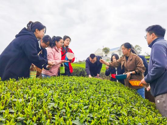 “食指拇指掐住‘一芽二叶’,轻轻一提就能摘下,别用指甲掐,也别用手捂太久,不然茶叶会变色变味……”3月6日,洗布潭村村民李书金的20余亩茶田里,迎来一群青春洋溢的游客。他一边娴熟采茶,一边当起“临时导师”,手把手教大家体验采茶乐趣。