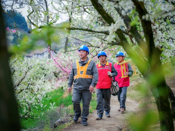 近日,国家电网重庆电力(市北)红岩共产党员服务队走进印盒村李花生态旅游中心开展安全用电检查,为市民游客春季赏花保驾护航。
