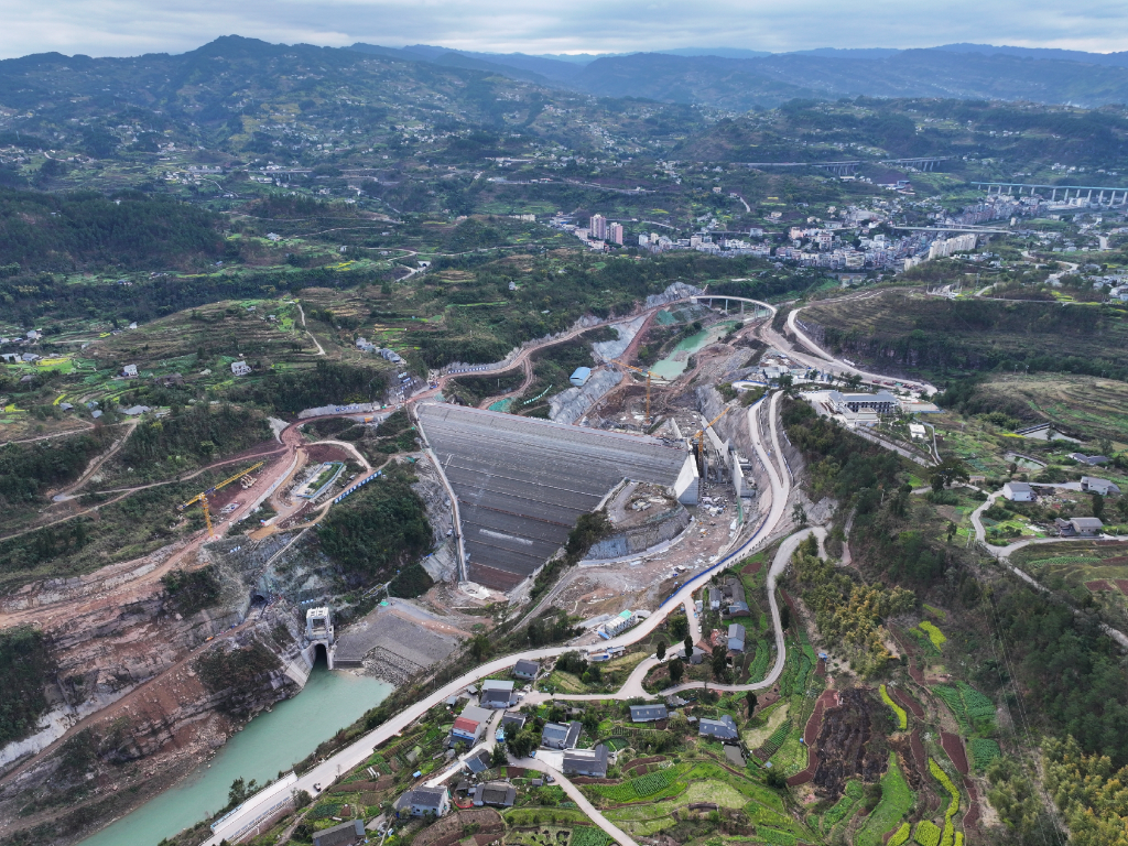 新华网重庆3月22日电(邵以南)春分时节,站在藻渡水库主体工程高点俯瞰,近300米长的大坝横卧藻渡河两岸,工人们抢抓枯水期窗口,溢洪道、输水隧洞、发电站厂房等配套施工一派繁忙;