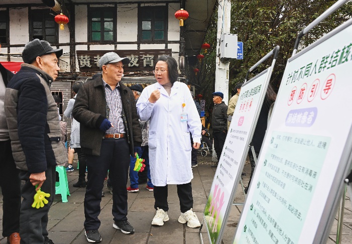 綦江区中医院医务人员给居民普及结核病防治知识。(陶涵 摄)