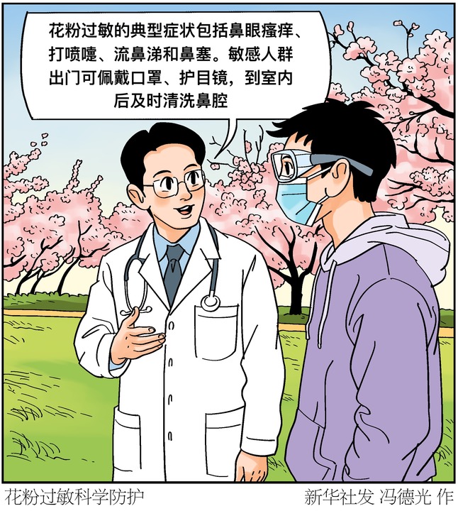 邓娅建议,“花粉高峰期减少出门,出门时佩戴口罩,可以有效过滤花粉等致敏物,同时佩戴密封性好的护目镜,可减少眼部过敏。穿光滑面料的衣服,减少花粉附着,回家后立刻洗脸、漱口,用生理盐水清洗鼻腔,更换外出的衣物。平时关好门窗,可使用空气净化器,勤换衣物床单,减少螨虫滋生。”