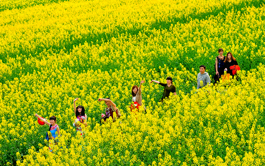 游客打卡秀山县清溪场街道万亩粮油示范基地花海美景。新华网发(唐磊 摄)