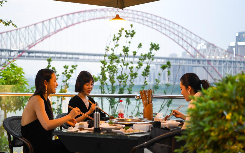 消费者在重庆三洞桥风情街吃火锅(资料图片)。新华社记者 王全超 摄