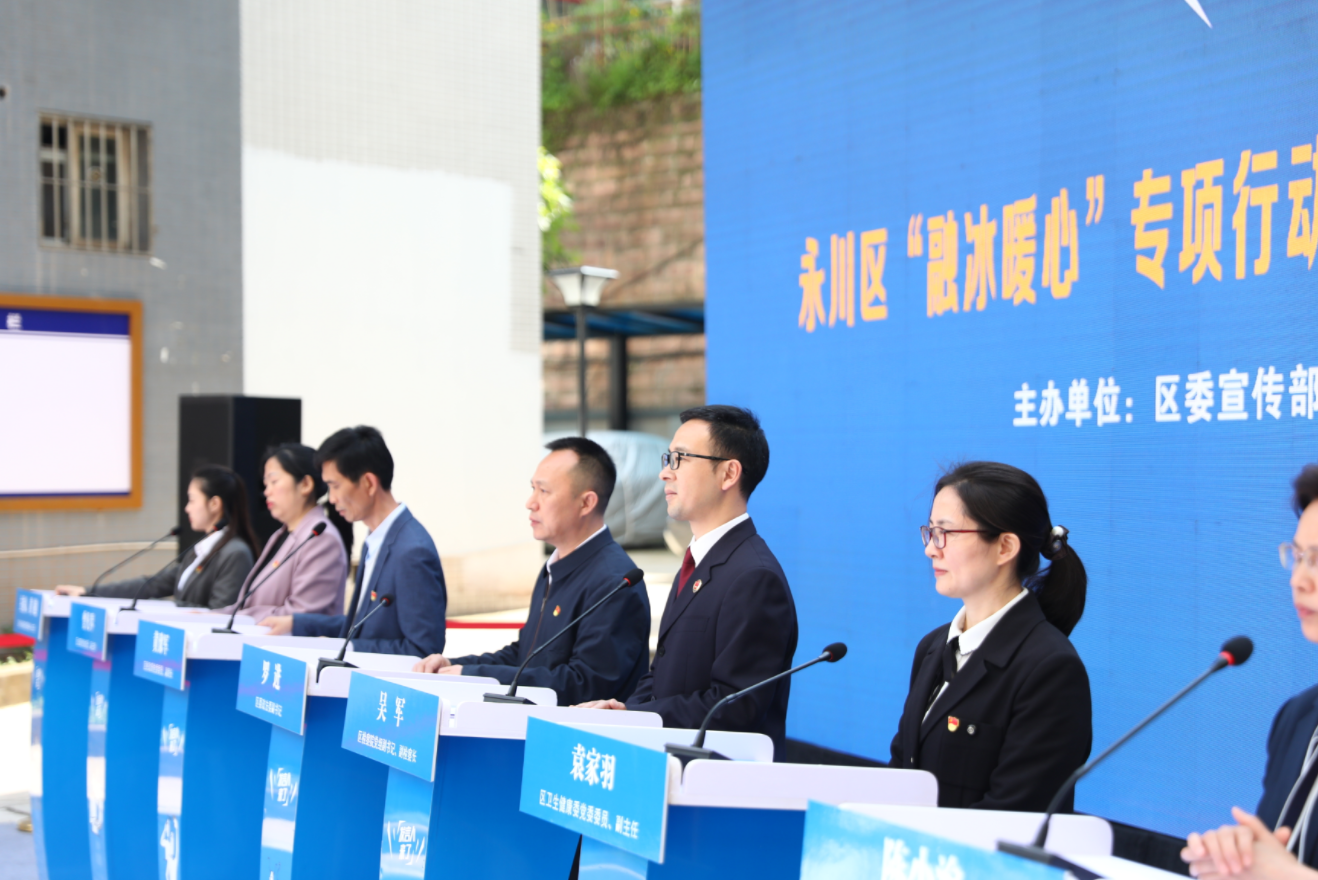 活动现场,永川区委政法委、区检察院、区卫生健康委、区民政局、区妇联、区教委等相关部门发言人,分别围绕“融冰暖心”专项行动、预防未成年人犯罪、法治护航未成年人成长、困境儿童福利保障、预防犯罪和心理健康、中小学生心育保护体系构建等内容作了情况介绍。