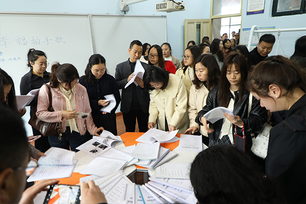 参会代表在合川区钱塘中学了解学校特教工作开展情况。