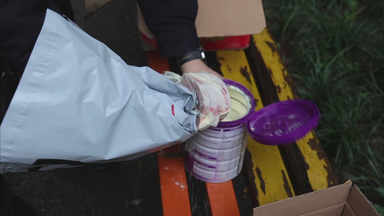 民警从奶粉罐中发现大量现金。重庆市公安局九龙坡区分局 供图