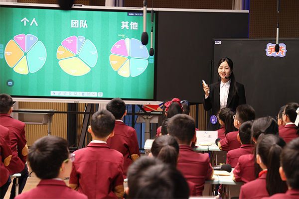 赛课现场,一位参赛教师以生动的班会课吸引了孩子们的专注参与。