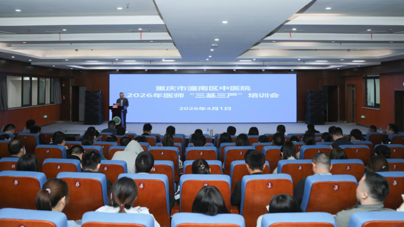 4月1日,潼南区中医院2026年度医师“三基三严”培训开班仪式在医院学术报告厅举行。该院院长何键出席仪式,相关职能部门负责人、授课老师及参训医师共130余人参加,仪式由副院长邓德民主持。