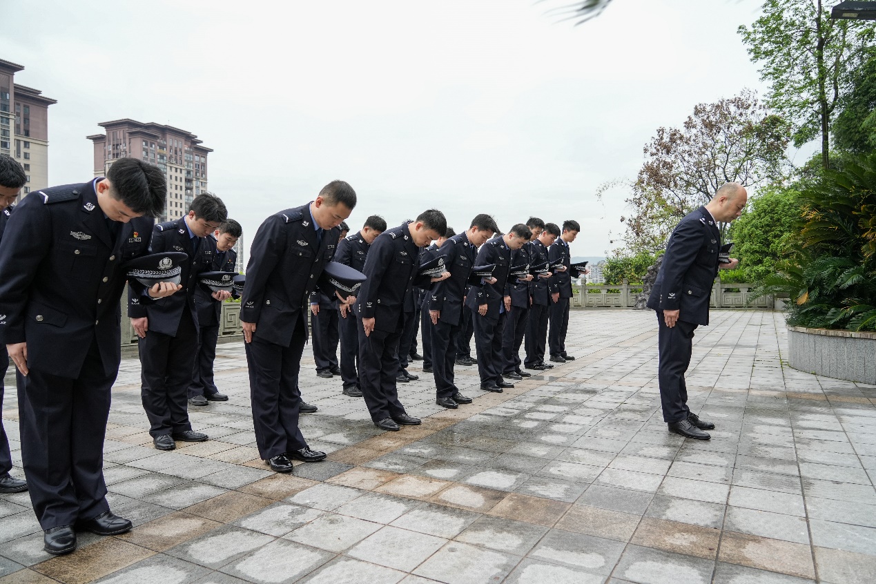 民警静立默哀、脱帽致敬,深切缅怀英烈功绩。重庆市万州区公安局 供图