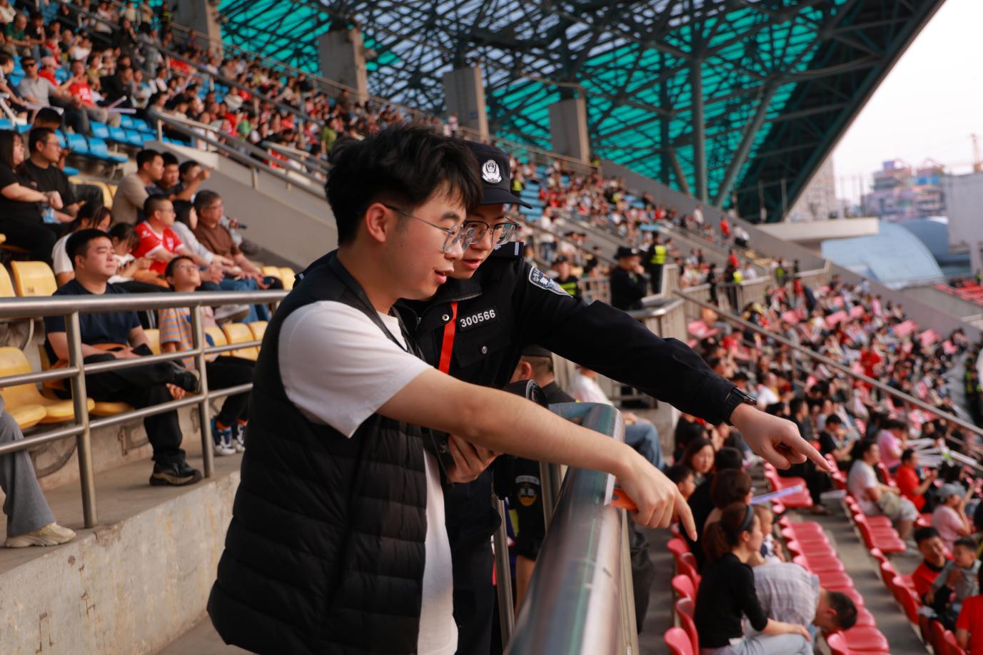 赛场内,执勤警力在看台来回巡查,回应群众咨询、引导座位,用藏蓝身影守护观赛空间;赛场外,五环广场的“渝超集市”烟火升腾,民警与相关部门全程值守,排查安全隐患,确保球迷“看得开心、吃得放心”。从决赛前的交通管制提示,到赛后的有序散场,九龙坡警方以“科技+人力”双轮驱动,将“平安底色”融入赛事每一个环节。