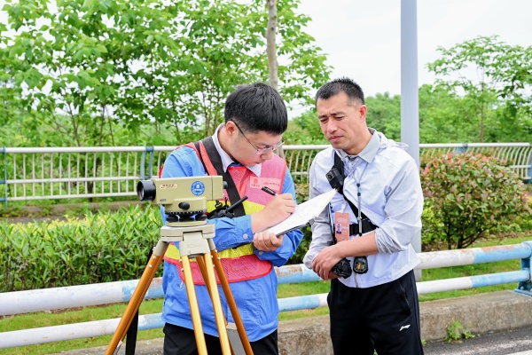 比赛现场,选手们精神饱满、沉着应战。从仪器架设、数据读取、误差分析到成果计算,每一个步骤都严谨细致、一丝不苟。全站仪、水准仪等精密设备在他们手中运用自如,导线测量、水准测量等核心环节环环相扣、有序推进。在“毫厘必争”的赛场上,选手们以精湛的技艺诠释了新时代测量人“精准、高效、务实、创新”的职业素养,践行了“差之毫厘,谬以千里”的专业准则。