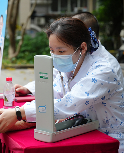 活动当天上午,重庆迪邦皮肤病医院的白癜风专病门诊医护人员早早来到现场,为居民提供面对面的诊疗服务。义诊台前,医护人员为居民测量血压,并针对春夏季高发的湿疹、皮炎、真菌感染等常见皮肤问题进行诊断和用药指导。
