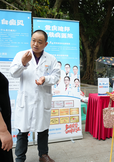 2026年4月15日,在第16个“全国白癜风防治日”到来之际,为响应“健康皮肤·全民行动”的号召,提升社区居民对皮肤健康尤其是白癜风疾病的科学认知,重庆迪邦皮肤病医院联合石马河街道在山水社区广场成功举办了一场主题为“关爱皮肤健康,科学防治白斑”的公益筛查与义诊活动,旨在帮助居民实现皮肤疾病的“早发现、早治疗、早康复”。