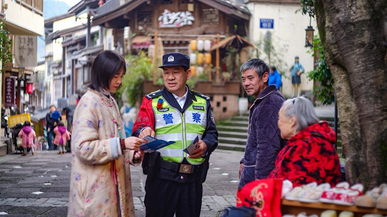 从军营到警营,从青丝到白发,25年坚守,刘良君从未离开社区警务一线。日行两万步,走出的是社情民意的通透,是与群众的鱼水深情;院坝里解心结,解开的是邻里隔阂,温暖的是群众心田。他用25年的坚守证明,社区警务不在纸面上,而在田间地头、村道院坝,在群众求助时“我马上来”的承诺里,在把板凳坐热、把人心拉近的点滴日常中,用“老黄牛”的坚守,书写着基层民警的责任与担当。(彭姿乐 夏钟英菲)