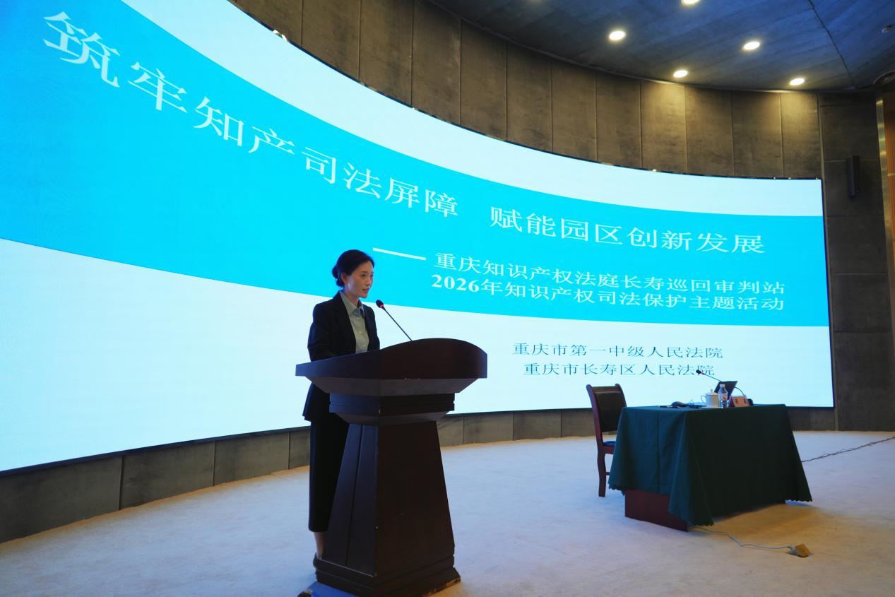 在第26个世界知识产权日即将来临之际,重庆市第一中级人民法院民三庭(重庆知识产权法庭)前往长寿巡回审判站,开展知识产权司法保护主题活动,精准对接长寿经开区企业司法需求,持续优化法治化营商环境,以司法服务助力新质生产力发展。长寿区人民法院、区工商联、区市场监管局,长寿经开区运行局、创新中心相关负责人,以及人大代表、政协委员和企业代表共110余人参加活动。