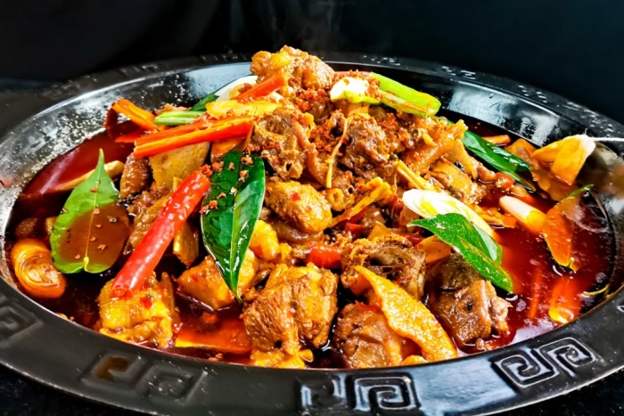 在盛山植物园中,散养着一群以桂花、虫蚁和五谷为食的土鸡,它们便是制作盛山桂花鸡的优质食材。这些土鸡的肉质极为细嫩,烹饪时加入党参、枸杞等药材红焖,桂香与药香巧妙交织,不仅美味可口,更具有滋补养生的功效,是开州 “食补文化” 的代表之一。