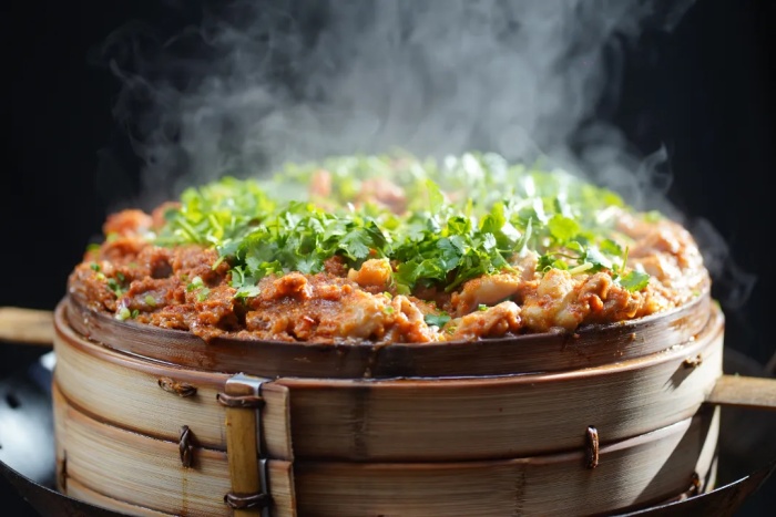 江湖人称“临江请客一大怪,桌上只上一道菜”,能入选“渝味360碗”,更是开州美食的“灵魂”。五花肉、排骨、肥肠与红薯、土豆、糯米层层码满,大火慢蒸后,荤香与素鲜完美交融,油脂浸润着每一样食材。