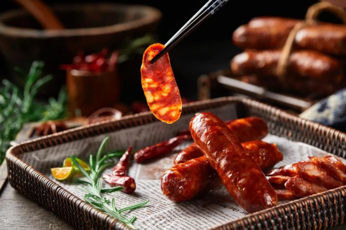 举子香肠以黄金肥瘦比例(7:3)和独特的冷藏发酵工艺闻名遐迩。入口瞬间,鲜嫩麻辣的口感冲击着味蕾,悠长的回味更是让人难以忘怀。