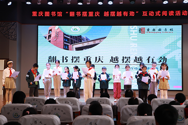 重庆图书馆到校开展“翻书摆重庆”读演活动。(袁华容 摄)