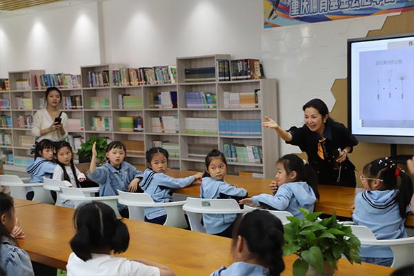 为拓宽阅读视野、丰富阅读场景,学校创新联动重庆图书馆,共同开展“翻书摆重庆”读演活动,依托重庆图书馆地方文献资源,将方言趣闻、民俗文化融入阅读表演,让同学们在沉浸式体验中读懂山城文化、厚植本土情怀。同时,邀请专业阅读推广人走进校园,为一二年级学生带来生动有趣的绘本导读课,用趣味互动引导低龄学子感受绘本魅力,培养早期阅读习惯。