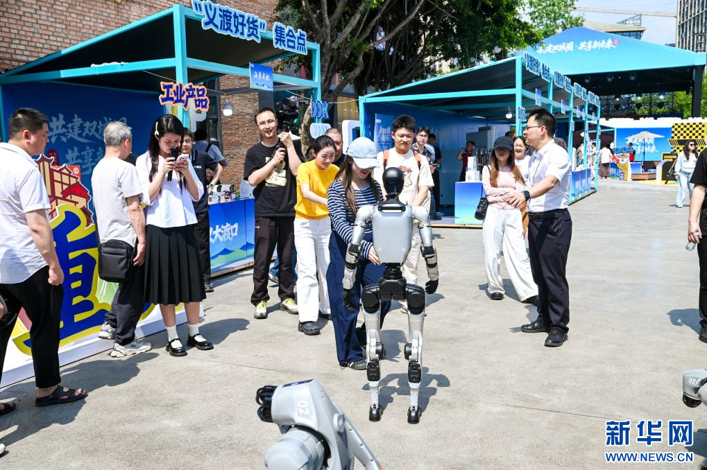 “义渡好货”进成都展区,市民与机器人互动。新华网发按照大渡口区发展改革委主任杜元淦的说法,打包“家底”集体走出去,源自底气更足。