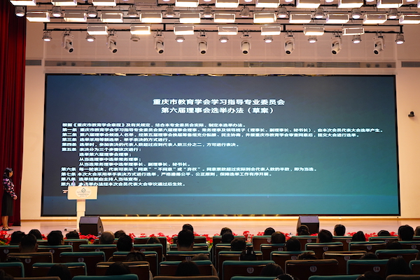 随后,重庆市教育学会监事长粟梅宣读《重庆市教育学会关于同意学习指导专业委员会换届的批复》,全体代表审议通过了第六届理事会选举办法,选举产生了第六届理事会理事、常务理事及领导班子,并宣布了第六届学术委员会名单,分别颁发聘书或证书。
