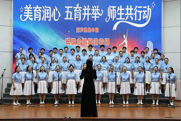 潼南中学初中组的演唱震撼全场。