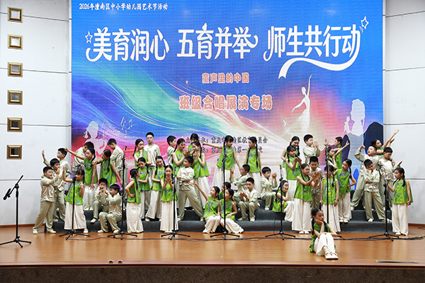 孩子们俏皮的动作让合唱更显灵动。
