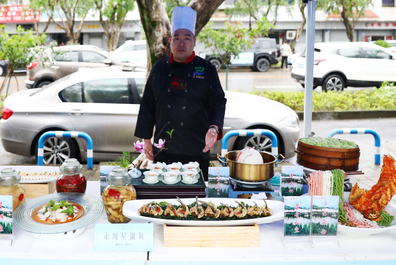 活动集中展示了星湖藤菜、星湖乳鱼等卫星湖街道本土食材。(刘灿 摄)
