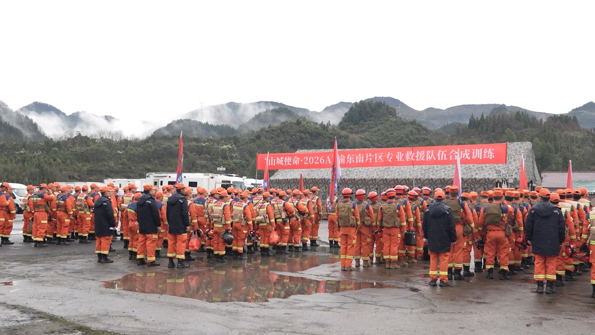 3月17日至20日,“山城使命·2026A”重庆市渝东南片区专业应急救援队伍合成训练在秀山县溪口镇附近地域展开