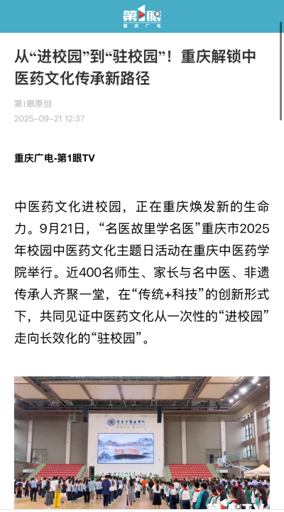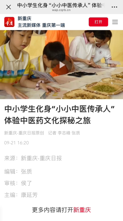 中医药文化进校园系列标准化课件上线重庆中小学智慧教育平台