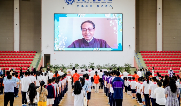 开幕式上,第二届国医大师孙光荣为大家带来“云上微课堂”,为同学们揭示了中医药这把打开中华文明宝库钥匙的深刻内涵。