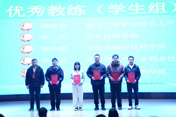 现场为大赛优秀教练(学生组)颁奖。
