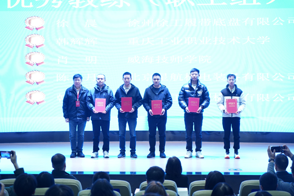现场为大赛优秀教练(职工组)颁奖。