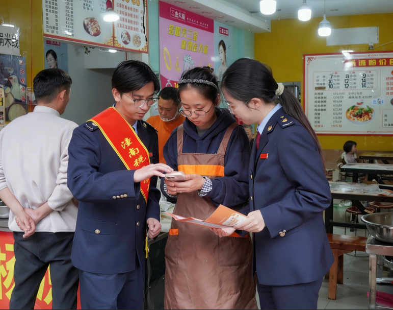 潼南区税务局组织税务人员走进双江古镇,为入驻商家讲解小微企业和个体工商户相关税收优惠政策适用条件、电子税务局纳税申报流程、发票管理要求等,助力其合规经营、健康发展。