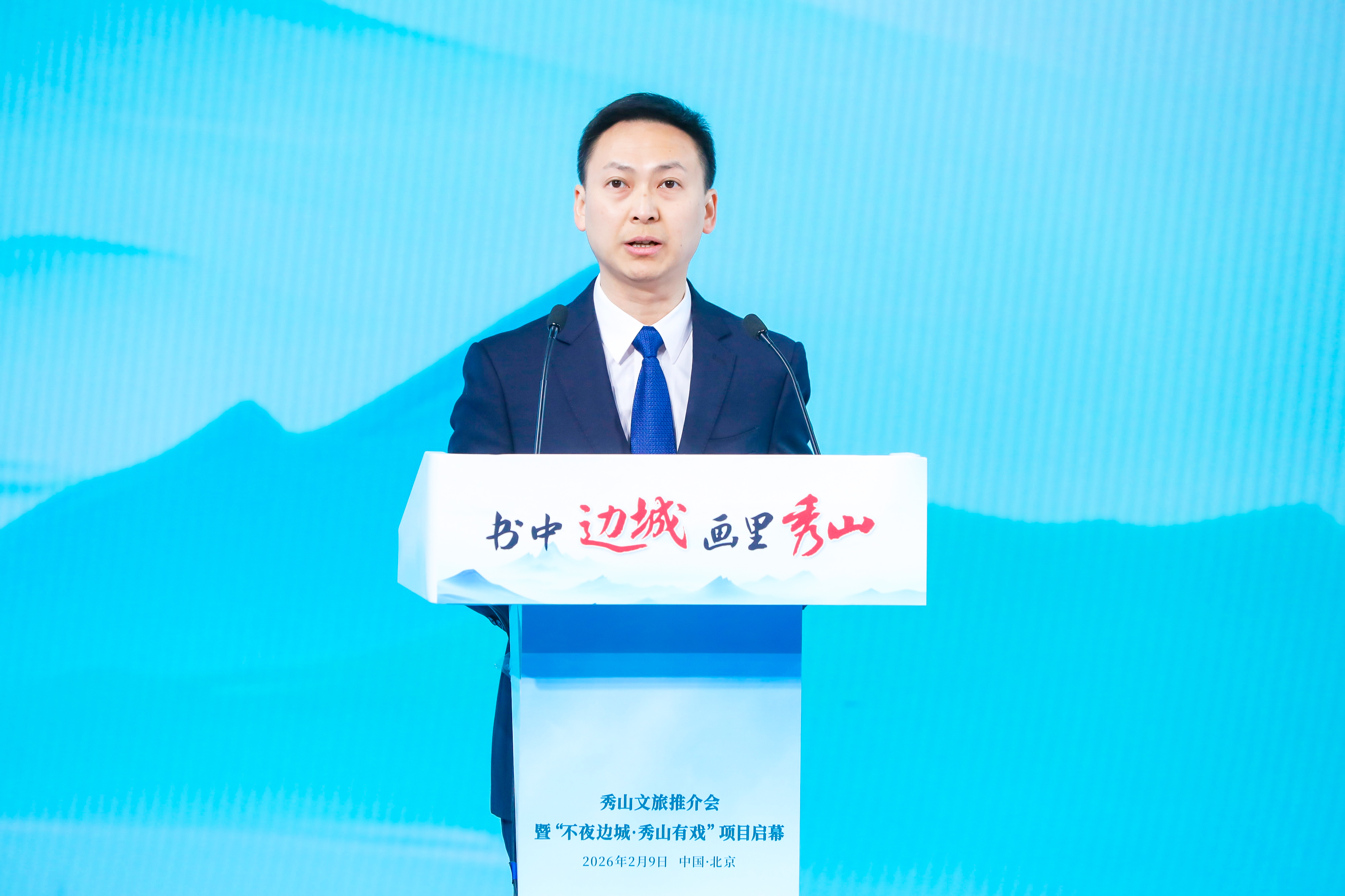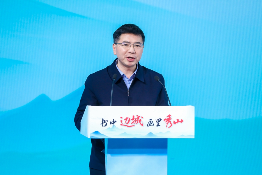 韩霄:尊敬的各位领导、各位来宾,媒体朋友们,女士们、先生们,大家上午好!非常高兴在这新春将至的美好时节,与大家相聚在新华社媒体创意工场,共同见证“书中边城·画里秀山”走进首都、走向全国的重要时刻。在此,我谨代表重庆市文化和旅游发展委员会,向莅临本次活动的各位嘉宾、各界朋友表示热烈的欢迎!向长期以来关心支持重庆文旅事业发展的新华社等中央媒体、文旅企业、行业协会致以诚挚的感谢!也为秀山县委、县政府精心筹备此次活动、主动对接首都资源的务实举措点赞!