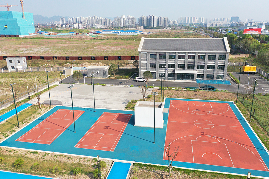 该项目为全加盖半地埋式污水处理厂,在集约化使用土地的同时,在加盖区顶部精心布置绿化植被,充分融入周边环境,实现环境和谐统一。同时,建设篮球场、羽毛球场等体育设施,为周边居民创造美好的休闲、娱乐空间,让他们尽享自然与运动的乐趣。