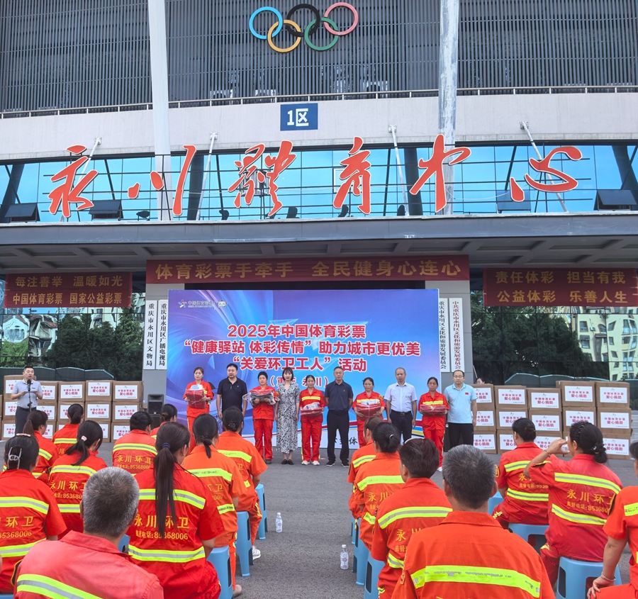 体彩的关爱视野,还投向了为城市美好辛勤付出的群体。2025年8月,“健康驿站 体彩传情”关爱环卫工人公益捐助活动举行,重庆体彩向永川区环卫工人捐赠600套环卫服以及手套、雨靴等爱心物资,传递了社会对环卫工人辛勤劳动的由衷敬意与贴心关怀。更具长效性的举措随之落地——重庆市体彩中心将联合合川区文化和旅游委、合川区城市管理局等部门,在城区人流密集处建设多处集彩票销售与公益惠民功能于一体的体彩健康驿站。这些驿站将为环卫工人、快递员、外卖小哥等户外劳动者提供临时休憩、免费饮水、加热饭菜、手机充电、应急药品等服务,在城市空间中构筑起尊重劳动、关爱劳动者的文明坐标,让公益的温度持续散发。