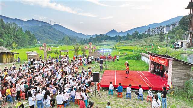 8月16日傍晚,彭水苗族土家族自治县太原镇区杨村,一场由村民自编自演的“村晚”正在热闹举行。