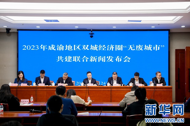 2023年成渝地区双城经济圈“无废城市”共建联合新闻发布会现场。新华网发