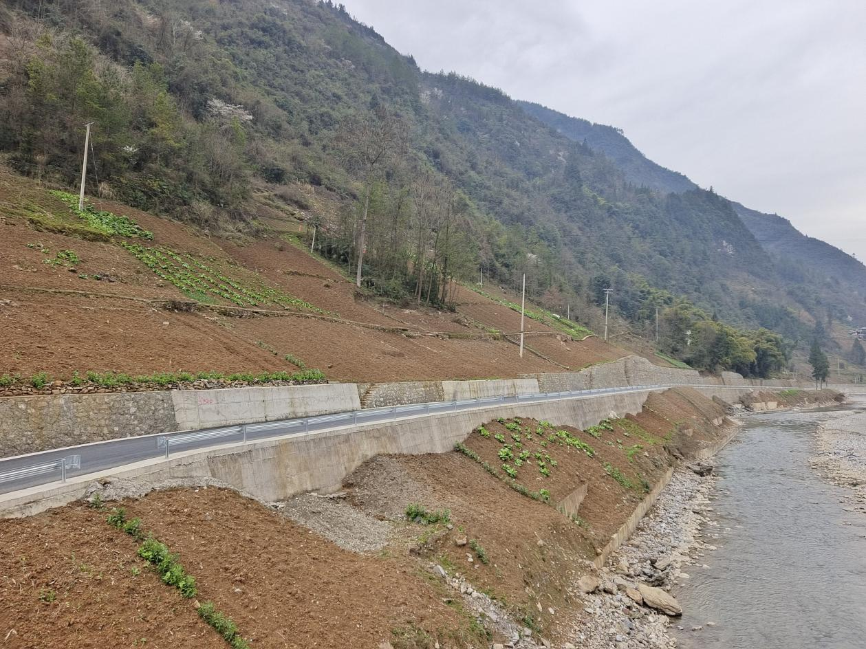 距离鸡鸣乡政府数百米开外,一条崭新的柏油路沿河向前,汽车行驶在四米多宽的道路上,还能多出一大半空间供行人畅行,被村民誉为“最美道路”。