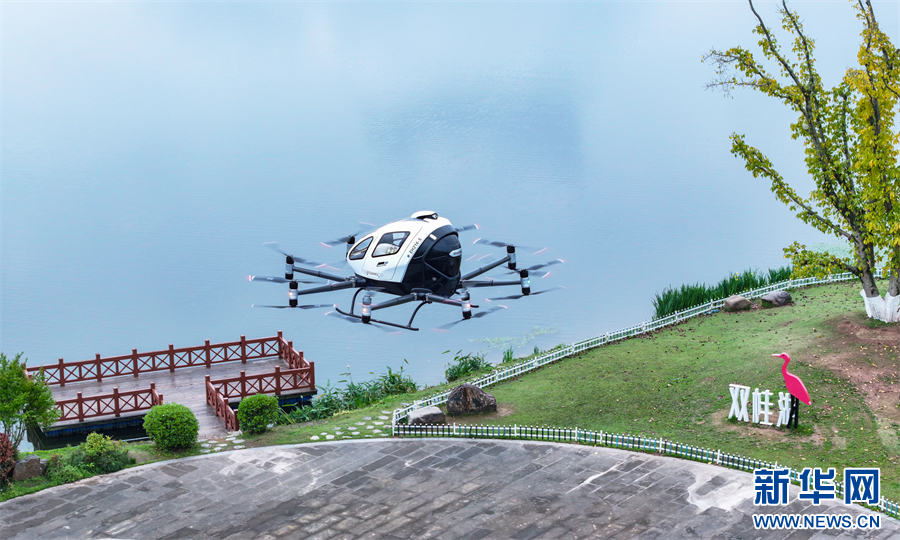 在梁平双桂湖国家湿地公园,无人驾驶载人航空器升空。新华网发(资料图 熊伟 摄)