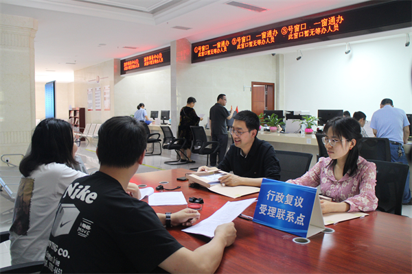 5月14日,荣昌区司法局在区法院立案大厅受理群众行政复议案件。