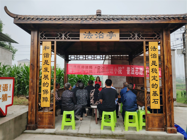5月10日,清江司法所到清江竹林村李家院子法治小院开展民法典法治宣传。(杨宏梅 摄)