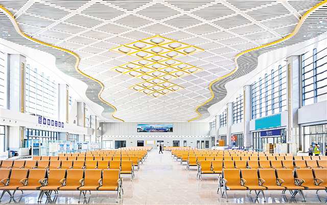 8月27日,渝昆高铁江津北站施工现场,完工的站内候车大厅整洁大气。