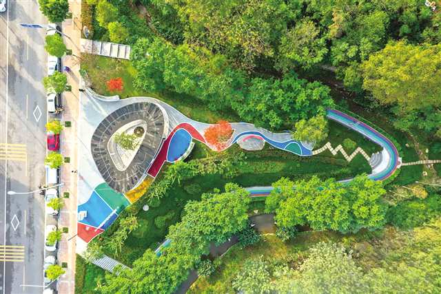 除了口袋公园外,大足区还对老旧公园进行了适老化、适儿化更新改造提升。通过对公园设施、植被、景观等进行全面升级,让老旧公园焕发出了新的生机。