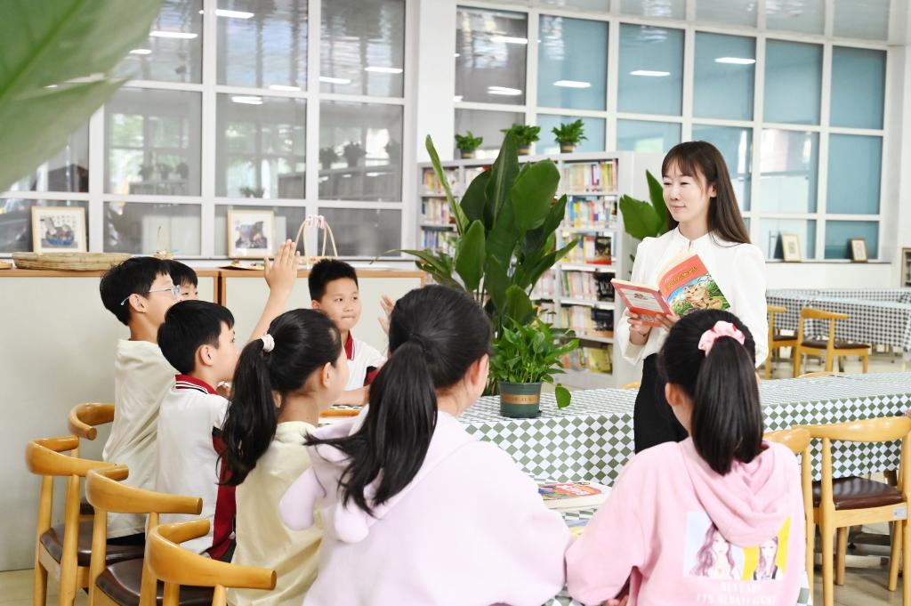 4月23日,珊瑚中铁小学的学生在读书日活动上。